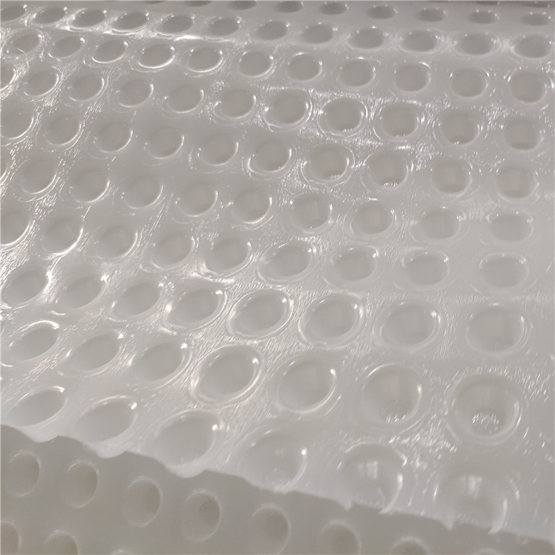 La plaque de drainage haute densité adopte un processus spécial pour presser la feuille de plastique dans de nombreuses coques cylindriques fermées et proéminentes, formant une connexion de coque de membrane concave-convexe, avec un espace tridimensionnel et une certaine hauteur. Grâce à sa conception spéciale, le panneau de drainage peut guider et évacuer efficacement l'eau, éviter l'accumulation d'eau dans le sol et utiliser le panneau de drainage pour remplacer la couche de filtre à eau à galets traditionnelle, ce qui peut économiser du temps, du travail et de l'énergie et réduire le charge du bâtiment.