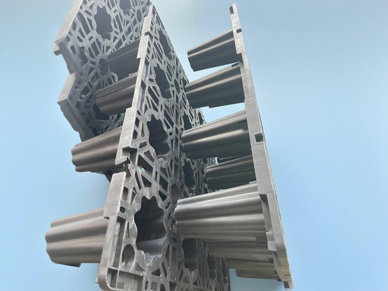 Stockage et purification de l'eau de pluie : L'eau de pluie collectée est stockée dans une cavité à l'intérieur du module. Ces cavités sont conçues avec une structure spéciale qui ralentit l'écoulement de l'eau, lui permettant de décanter naturellement pendant le stockage et d'éliminer ainsi davantage d'impuretés. De plus, une couche filtrante à l'intérieur du module purifie davantage l'eau de pluie et élimine les petites particules et les substances nocives.